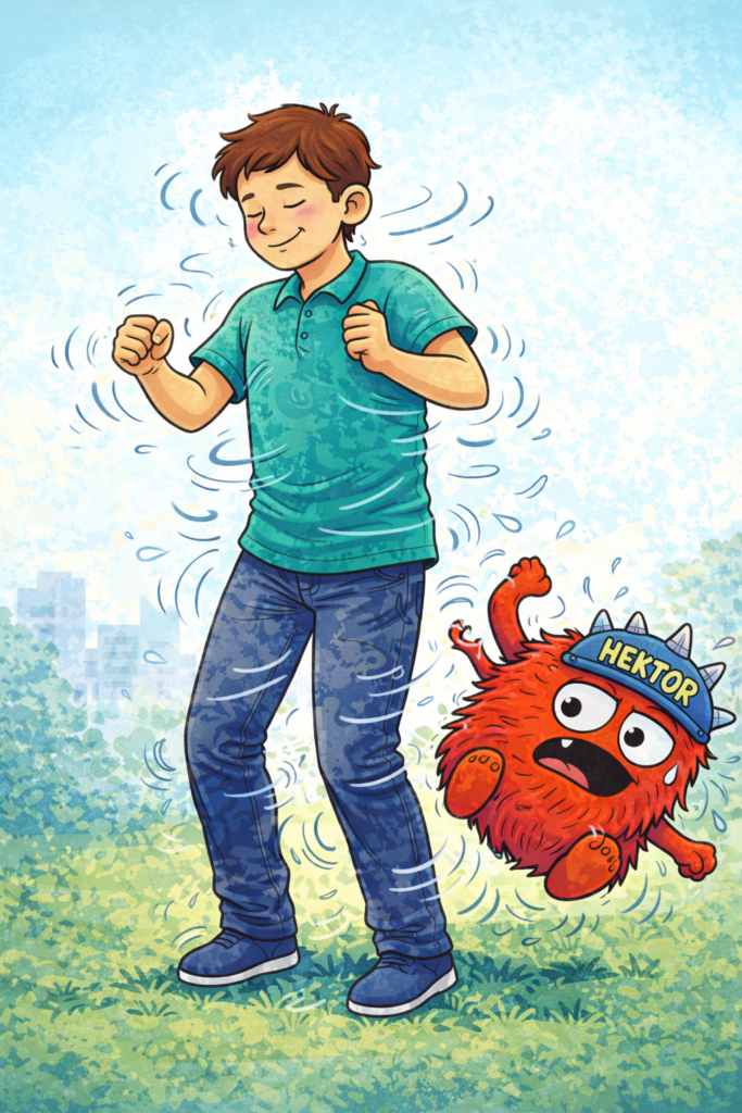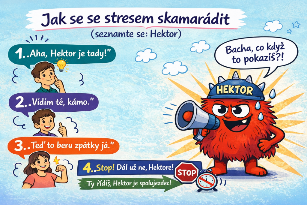 Až když je stres viděný a pojmenovaný, má smysl jít dál. Třeba ho dostat z těla pohybem, třesem nebo dechem. To už je další fáze. Teď jde hlavně o to, aby Hektor nepřevzal řízení.